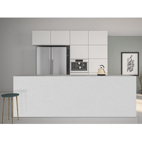 1001 كوارتز أبيض لامع يتميز هذا الكوارتز بمظهر نقيّ ومشرق، بقاعدته البيضاء الناصعة المتداخلة بدقة مع رقائق معدنية متلألئة. يشعّ سطحه أناقةً، إذ يعكس بريقه الخافت الضوء من كل زاوية، مضيفًا إحساسًا بالعمق والرقي. صُمم هذا الكوارتز ليُضفي لمسة جمالية راقية على أي مساحة، مما يجعله مثاليًا لأسطح المطابخ الحديثة، ووحدات الحمام، والأسطح المميزة.