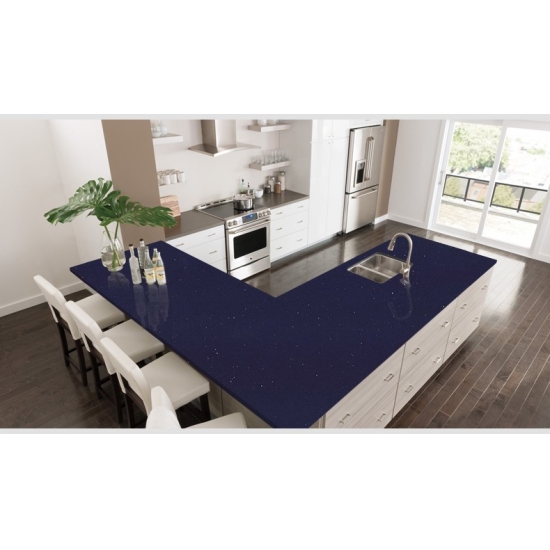 بلاط أسطح مطابخ من الكوارتز الأزرق الداكن "ستيلار مارين"، وهو عبارة عن لوح كبير من حجر الكوارتز المصنوع صناعياً من بلورات الكوارتز، يُستخدم لتزيين أسطح وجدران منزلك، وسيضفي عليه جمالاً رائعاً. للحصول على استشارة وعرض سعر، يُرجى ترك رسالة.