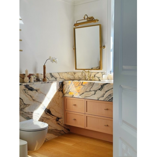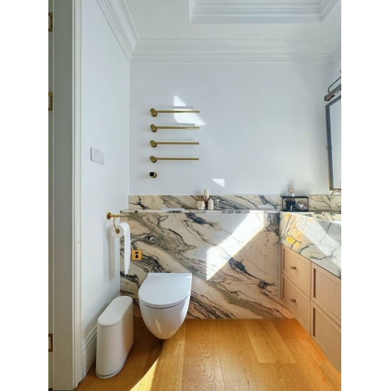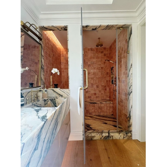 البرتغال اندولاري روسو للرخام لديه لون وردي دخاني فريد منخفض التشبع، بنسيجه المتشابك بدقة، يُشبه توهج غروب الشمس الذي ينساب برقة عبر مجرة لا متناهية. إنه مُعقّد ورائع في آنٍ واحد، حيث يروي كل سطر قصة تناغم الطبيعة والأحلام.