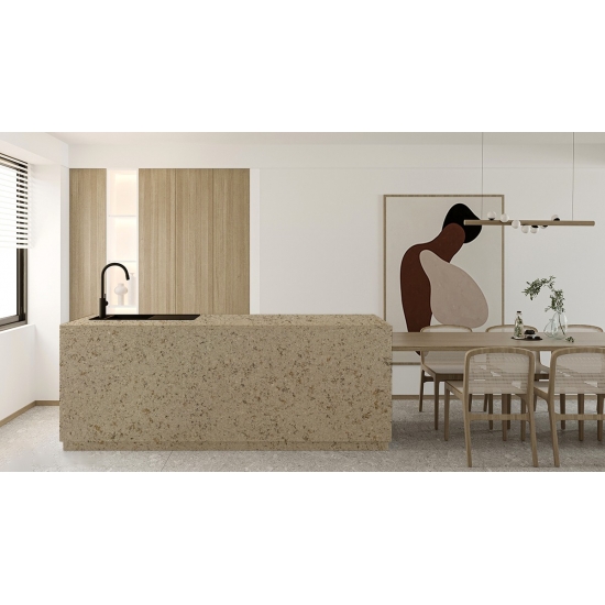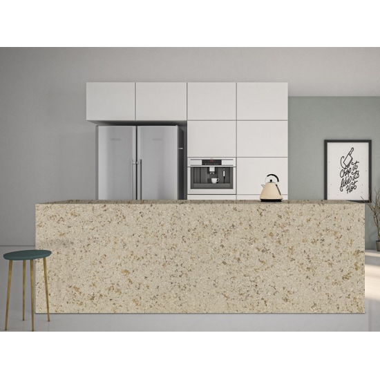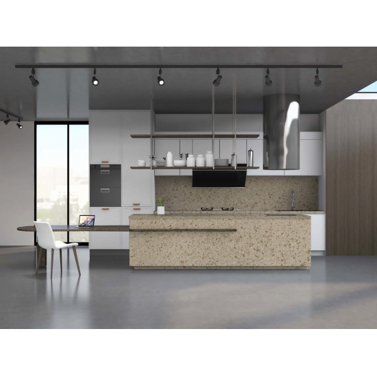 حجر الكوارتز الرملي اللامع هو حجر كوارتز صناعي معالج خصيصًا، يتميز عن غيره من الأنواع بمظهره البراق. يضفي هذا الكوارتز إحساسًا بالعمق والملمس عند تركيبه على الجدران والأرضيات وأسطح العمل وغيرها. يمكن استخدامه لابتكار قطع جدارية رائعة وخلفيات أحواض مميزة في الحمامات والمطابخ. يتميز هذا الكوارتز بمقاومته للجراثيم والرطوبة، مما يجعله مثاليًا للاستخدام في الأماكن الرطبة.