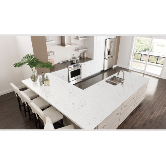لوح كوارتز من رخام أوشن كارارا رقم 4002 يتميز هذا المنتج بمظهر أنيق وراقي، بخلفية بيضاء ناعمة تتخللها عروق رمادية دقيقة مستوحاة من رخام كرارا الطبيعي. تخلق هذه العروق المتدفقة حركة هادئة تشبه حركة المحيط على السطح، مما يضفي عمقًا مع الحفاظ على جمالية نقية وخالدة. تُشع هذه اللوحة الكوارتزية بفخامة راقية، إذ تجمع بين الجمال الكلاسيكي والمتانة العصرية، مما يجعلها خيارًا مثاليًا للمطابخ والحمامات والمساحات الداخلية الأنيقة التي تسعى إلى مظهر مشرق وجذاب.