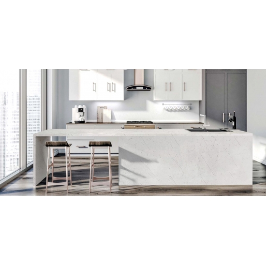 4005 بيانكا فينو لوح الكوارتز الرخامي يتميز هذا الكوارتز بجمالية راقية وأنيقة، تتجلى في خلفيته البيضاء الناعمة المزينة بعروق رمادية رقيقة متدفقة. تخلق أنماطه الرقيقة المستوحاة من الرخام إحساسًا بالحركة والانسجام الطبيعي، مما يمنح سطحه مظهرًا أنيقًا وفخمًا في آن واحد. ينضح هذا الكوارتز برقي خالد، محققًا توازنًا بين البساطة والأصالة، وهو مثالي لإضفاء لمسة نهائية مشرقة وأنيقة وراقية على الديكورات الداخلية الحديثة والكلاسيكية على حد سواء.