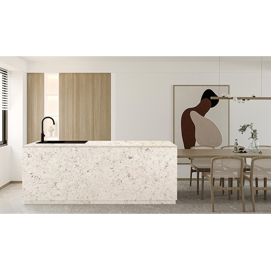 كوارتز رخام كريك 4016 يتميز هذا الحجر بمظهر ناعم وأنيق، بقاعدة بيضاء كريمية تتخللها عروق رمادية رقيقة. تضفي هذه العروق الدقيقة إحساسًا طبيعيًا بالحركة والرقي، مانحةً السطح سحرًا راقيًا خالدًا. صُممت هذه اللوحة الكوارتزية لتضفي لمسة من الفخامة البسيطة على أي تصميم داخلي، مُحسّنةً المساحات بجمالها الهادئ والراقي.