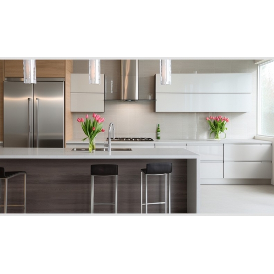 4022 شرق الرخام الأبيض الكوارتز يتميز هذا الكوارتز بمظهر أنيق وراقي، بخلفيته البيضاء الناصعة المزينة بعروق ناعمة وجذابة. يشع سطحه بالفخامة، حيث تتشابك العروق الرقيقة بانسيابية على سطحه، مما يخلق إحساسًا بالانسيابية والحركة الطبيعية. صُمم هذا الكوارتز لإضفاء لمسة راقية على أي تصميم داخلي، مضيفًا لمسة خالدة من الرقي والفخامة إلى أسطح العمل، ووحدات الحمام، والجدران المميزة.