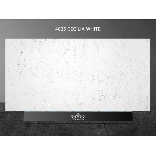 4025 سيسيليا رخام أبيض كوارتز يتميز هذا الكوارتز بمظهر أنيق ونظيف، بقاعدته البيضاء الناصعة المزينة بعروق دقيقة رمادية ناعمة. يضفي سطحه إحساسًا بالرقي الهادئ، حيث تخلق العروق الرقيقة انسيابية طبيعية وعمقًا على سطحه. صُمم هذا الكوارتز ليمنح جمالًا خالدًا ورقيًا، مضيفًا لمسة من السكينة والفخامة إلى أي مكان يُزينه.