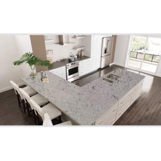 4027 بيانكو ستريم رخام كوارتز يتميز هذا الكوارتز بمظهر ناعم وأنيق، بخلفية بيضاء ناصعة تتخللها عروق رمادية انسيابية رقيقة. يضفي سطحه إحساسًا بالرقي الهادئ، حيث تُضفي العروق الدقيقة حركة طبيعية وعمقًا دون أن تُطغى على المكان. صُمم هذا الكوارتز ليُضفي مظهرًا راقيًا وخالدًا، مانحًا لمسة منعشة ومتجددة للمطابخ والحمامات وغيرها من المساحات الداخلية.
