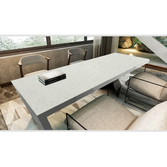 4032 كوارتز رخام كارارا خشن يتميز هذا الكوارتز بمظهر أنيق وخالد، بخلفية بيضاء ناعمة تبرزها عروق رمادية جريئة وخشنة مستوحاة من رخام كرارا الطبيعي. يضفي السطح طابعًا راقيًا وديناميكيًا في آنٍ واحد، حيث تنساب العروق البارزة بانسيابية على سطح اللوح، مما يضيف عمقًا وحركة طبيعية. صُمم هذا الكوارتز ليجمع بين جمالية الرخام الكلاسيكية ومتانة معززة، مما يجعله خيارًا مثاليًا للمساحات العصرية والتقليدية على حد سواء، ويعزز في الوقت نفسه الإحساس العام بالفخامة.