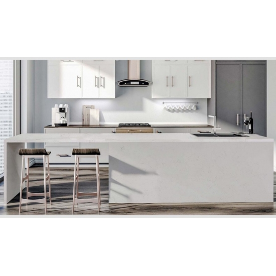 4037 يُضفي كوارتز كارارا جورجيو جمال رخام كارارا الكلاسيكي في قالب عصري أنيق. بفضل عروقه الرمادية الفاتحة التي تنساب برشاقة على سطح أبيض ناعم، يُضفي هذا الكوارتز لمسة من الفخامة الخالدة. كما تُضفي الحركة الطبيعية للعروق إحساسًا بالعمق والرقي، مما يجعله خيارًا مثاليًا للمساحات التقليدية والمعاصرة على حد سواء. يُعدّ كارارا جورجيو خيارًا مثاليًا لمن يرغبون في مظهر فاخر وراقٍ يدوم طويلًا.