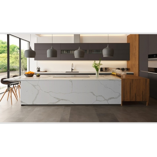 لوح كوارتز طريق الحرير 5003 يتميز بسطح أبيض دافئ وهادئ، تتخلله عروق رقيقة وناعمة بلون رمادي فاتح وبني مائل للبيج. يضفي هذا التدفق العضوي الرقيق إحساسًا بالأناقة الهادئة والرقي الخالد. مثالي للتصاميم العصرية والكلاسيكية على حد سواء، فهو يمنح أي مساحة داخلية لمسة من الفخامة والهدوء.