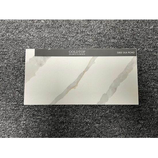 جولد توب ألواح كوارتز أبيض فائقة الجودة من طريق الحرير 5003، قابلة للتخصيص