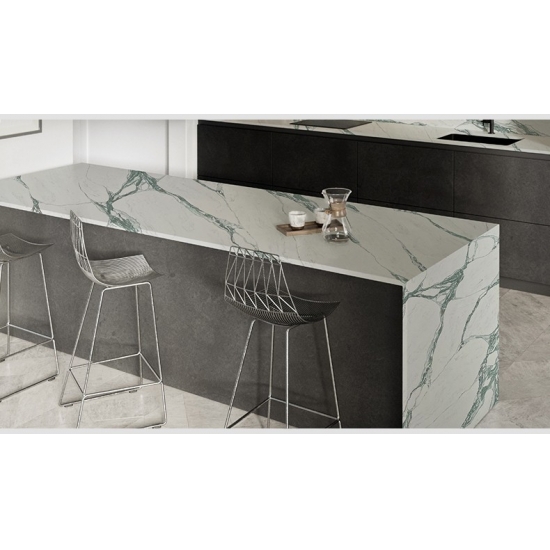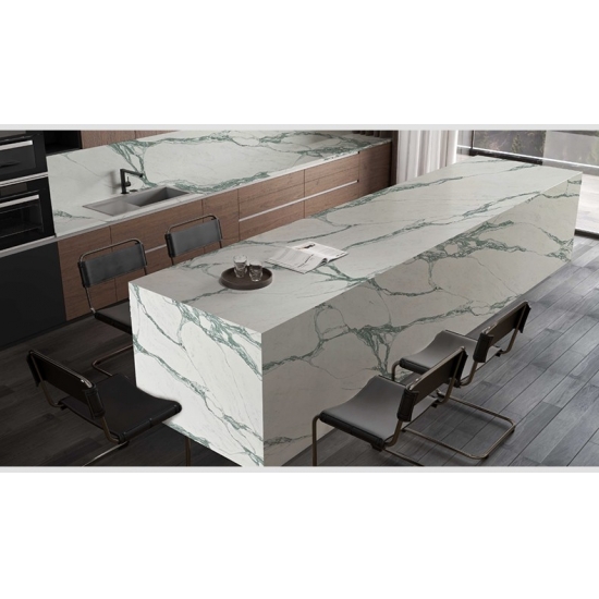 كوارتز كالاكاتا غريجيو، يُعد كوارتز سلسلة كالاكاتا حاليًا المنتج الأكثر شيوعًا من أحجار الكوارتز. يوفر هذا الكوارتز المظهر الطبيعي لرخام كالاكاتا، ولكن دون أي من عيوب أسطح الرخام. يتميز كوارتز كالاكاتا بمتانته العالية ومقاومته للبقع والخدوش، مما يجعله خيارًا عمليًا للغاية لأسطح المطابخ والحمامات، والسلالم، وعتبات النوافذ، والأثاث المصمم حسب الطلب، وتطبيقات الجدران والأرضيات الداخلية والخارجية، وأنماط القطع المائي، وغيرها من مشاريع التصميم.