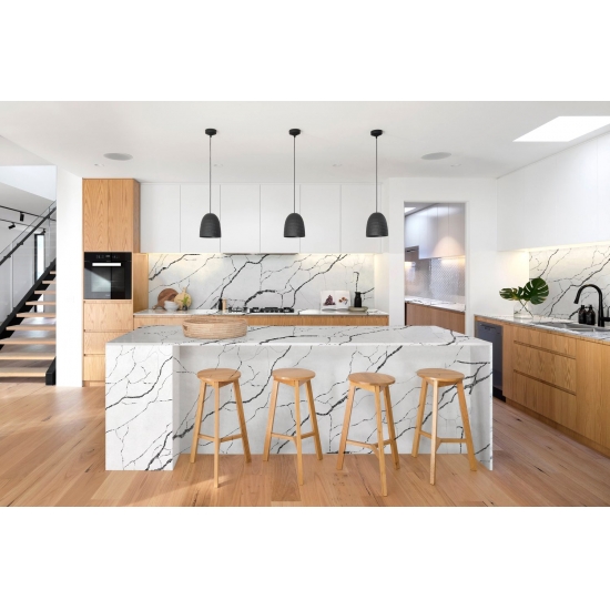 يُعدّ هذا الكوارتز مثاليًا لمجموعة واسعة من الاستخدامات، بدءًا من أسطح العمل وجزر المطبخ وصولًا إلى الجدران المميزة ووحدات الحمام. تُضفي عروقه البارزة طابعًا فريدًا ورقيًا، مما يجعله نقطة جذب في أي تصميم. سواءً تمّ تنسيقه مع ألوان معدنية أنيقة أو درجات خشبية دافئة، يُعزّز كوارتز كالاكاتا فيورينا 5125 أناقة أي مساحة.