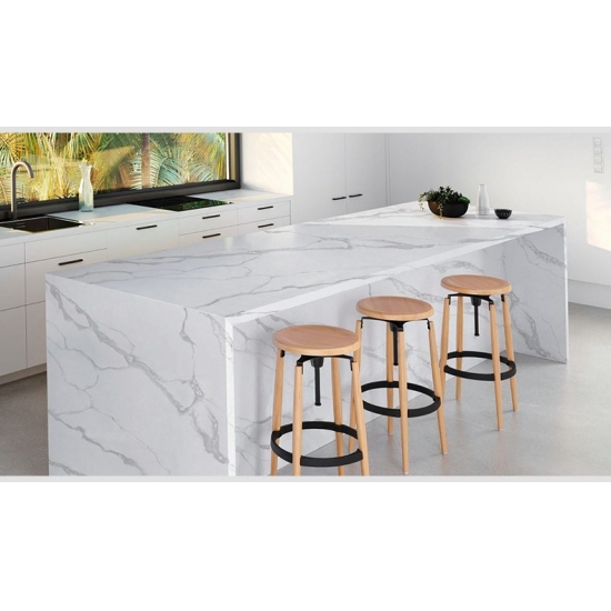 تتميز لوحة الكوارتز 5012 Mvjay بطابع جريء وديناميكي، يتجلى في قاعدة داكنة بلون الفحم تتداخل فيها عروق بيضاء لافتة للنظر. يخلق هذا النمط عالي التباين تأثيرًا بصريًا قويًا وإحساسًا بالحيوية. تُضفي هذه اللوحة لمسة عصرية رائدة، مثالية لخلق نقاط محورية في التصميمات الداخلية المعاصرة، وإضفاء لمسة من الفخامة والجرأة على أي مساحة.