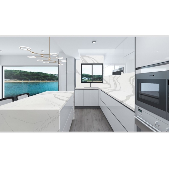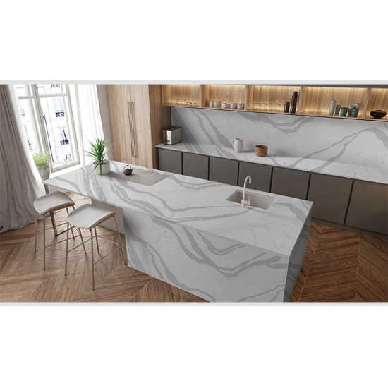 تتميز لوحة كوارتز فالي 5014 بقاعدة بيضاء ناعمة وكريمية تتداخل برشاقة مع عروق رمادية رقيقة وانسيابية. يضفي هذا التباين الرقيق لمسة من الأناقة الطبيعية الهادئة وإحساسًا بالحركة الهادئة. تمنح هذه اللوحة جمالًا خالدًا ومتعدد الاستخدامات، مما يجعلها مثالية لخلق جو هادئ وراقي في أي مساحة داخلية.