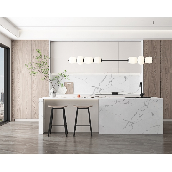 يُعدّ كوارتز كالاكاتا حاليًا المنتج الأكثر رواجًا بين أنواع الكوارتز. يتميز كوارتز كالاكاتا بجماله الفريد، حيث يُبهر الحواس بلونه الأبيض الناصع وعروقه الرخامية البارزة التي تُضفي عليه مظهرًا رخاميًا خلابًا. بفضل عروقه العريضة الجميلة وملمسه الفاخر، يُقدّم هذا الكوارتز المظهر الطبيعي لرخام كالاكاتا، دون أي من عيوب أسطح الرخام. يتميز كوارتز كالاكاتا بمتانته العالية ومقاومته للبقع والخدوش، مما يجعله خيارًا عمليًا للغاية لأسطح المطابخ والحمامات، والسلالم، وعتبات النوافذ، والأثاث المصمم حسب الطلب، والجدران والأرضيات الداخلية والخارجية، وتقنية القطع بالماء، وغيرها من مشاريع التصميم.