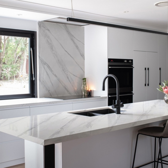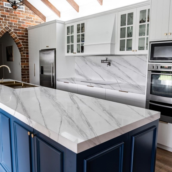 يُبهر كوارتز كالاكاتا، بجماله الفريد، الحواس بلونه الأبيض الناصع وعروقه الرخامية البارزة التي تُضفي عليه مظهرًا رخاميًا خلابًا. يتميز هذا الكوارتز بنمط عروقه العريضة والجميلة، وملمسه الفاخر، ليُقدم المظهر الطبيعي لرخام كالاكاتا، دون أي من عيوب أسطح الرخام. يُعد كوارتز كالاكاتا سطح عمل متينًا للغاية، مقاومًا للبقع والخدوش، مما يجعله خيارًا عمليًا جدًا لأسطح المطابخ والحمامات، والسلالم، وعتبات النوافذ، والأثاث المصمم حسب الطلب، والجدران والأرضيات الداخلية والخارجية، وتقنية القطع المائي، وغيرها من مشاريع التصميم.