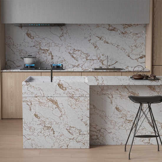 يُعدّ كوارتز كالاكاتا حاليًا المنتج الأكثر رواجًا بين أنواع الكوارتز. يتميز كوارتز كالاكاتا بجماله الفريد، حيث يُبهر الحواس بلونه الأبيض الناصع وعروقه الرخامية البارزة التي تُضفي عليه مظهرًا رخاميًا. بفضل عروقه العريضة الجميلة وملمسه الفاخر، يُقدّم هذا الكوارتز المظهر الطبيعي لرخام كالاكاتا، دون أي من عيوب أسطح الرخام. يتميز كوارتز كالاكاتا بمتانته العالية ومقاومته للبقع والخدوش، مما يجعله خيارًا عمليًا للغاية لأسطح المطابخ والحمامات، والسلالم، وعتبات النوافذ، والأثاث المصمم حسب الطلب، والجدران والأرضيات الداخلية والخارجية، وتقنية القطع بالماء، وغيرها من مشاريع التصميم.