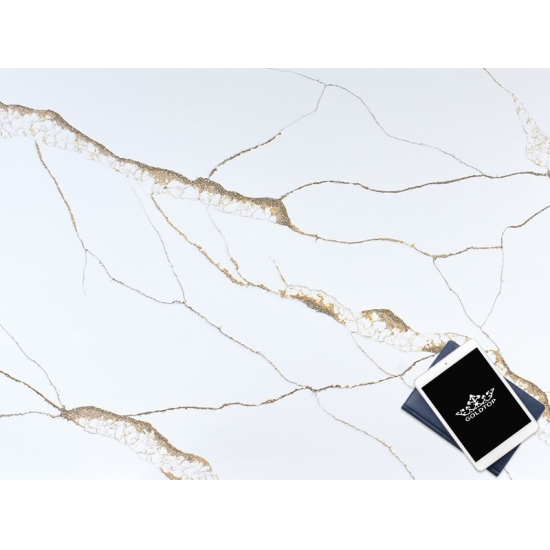 جولد توب 5053 ترانكويليتي جولد وايت كالاكاتا كوارتز أسطح مطابخ بالجملة من المصنع