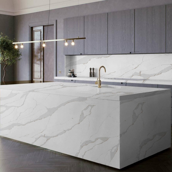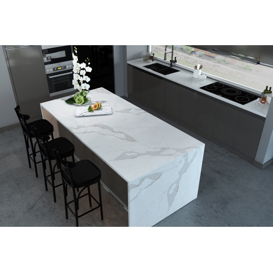 يُعدّ كوارتز كالاكاتا حاليًا المنتج الأكثر رواجًا بين أنواع الكوارتز. يتميز كوارتز كالاكاتا بجماله الفريد، حيث يُبهر الحواس بلونه الأبيض الناصع وعروقه الرخامية البارزة التي تُضفي عليه مظهرًا رخاميًا خلابًا. بفضل عروقه العريضة الجميلة وملمسه الفاخر، يُقدّم هذا الكوارتز المظهر الطبيعي لرخام كالاكاتا، دون أي من عيوب أسطح الرخام. يتميز كوارتز كالاكاتا بمتانته العالية ومقاومته للبقع والخدوش، مما يجعله خيارًا عمليًا للغاية لأسطح المطابخ والحمامات، والسلالم، وعتبات النوافذ، والأثاث المصمم حسب الطلب، والجدران والأرضيات الداخلية والخارجية، وتقنية القطع بالماء، وغيرها من مشاريع التصميم.