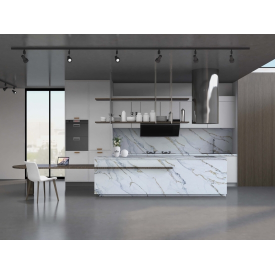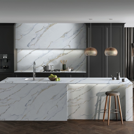 يُبهر كوارتز كالاكاتا، بجماله الفريد، الحواس بلونه الأبيض الناصع وعروقه الرخامية البارزة التي تُضفي عليه مظهرًا رخاميًا خلابًا. يتميز هذا الكوارتز بنمط عروقه العريضة والجميلة، وملمسه الفاخر، ليُقدم المظهر الطبيعي لرخام كالاكاتا، دون أي من عيوب أسطح الرخام. يُعد كوارتز كالاكاتا سطح عمل متينًا للغاية، مقاومًا للبقع والخدوش، مما يجعله خيارًا عمليًا جدًا لأسطح المطابخ والحمامات، والسلالم، وعتبات النوافذ، والأثاث المصمم حسب الطلب، والجدران والأرضيات الداخلية والخارجية، وتقنية القطع المائي، وغيرها من مشاريع التصميم.