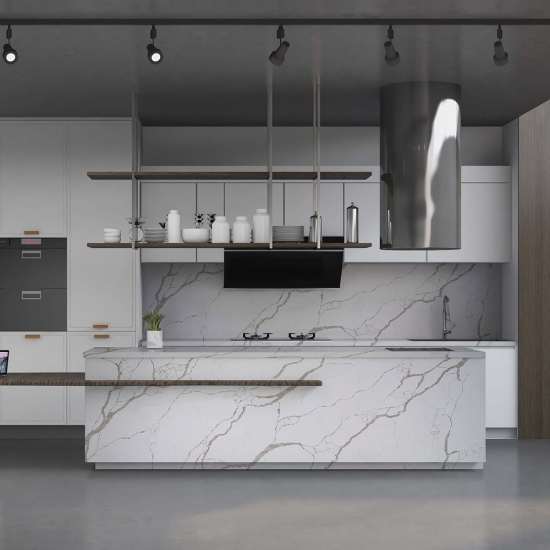 يُعدّ كوارتز كالاكاتا حاليًا المنتج الأكثر رواجًا بين أنواع الكوارتز. يتميز كوارتز كالاكاتا بجماله الفريد، حيث يُبهر الحواس بلونه الأبيض الناصع وعروقه الرخامية البارزة التي تُضفي عليه مظهرًا رخاميًا خلابًا. بفضل عروقه العريضة الجميلة وملمسه الفاخر، يُقدّم هذا الكوارتز المظهر الطبيعي لرخام كالاكاتا، دون أي من عيوب أسطح الرخام. يتميز كوارتز كالاكاتا بمتانته العالية ومقاومته للبقع والخدوش، مما يجعله خيارًا عمليًا للغاية لأسطح المطابخ والحمامات، والسلالم، وعتبات النوافذ، والأثاث المصمم حسب الطلب، والجدران والأرضيات الداخلية والخارجية، وتقنية القطع بالماء، وغيرها من مشاريع التصميم.