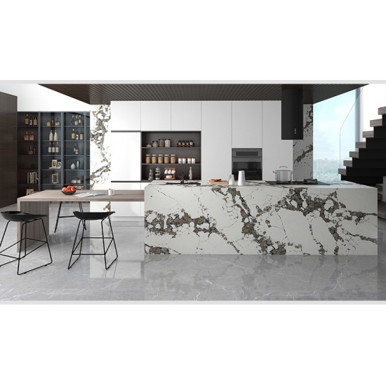 جولد توب مصنع أسطح مطابخ كالاكاتا باندورا البيضاء من الكوارتز 5076