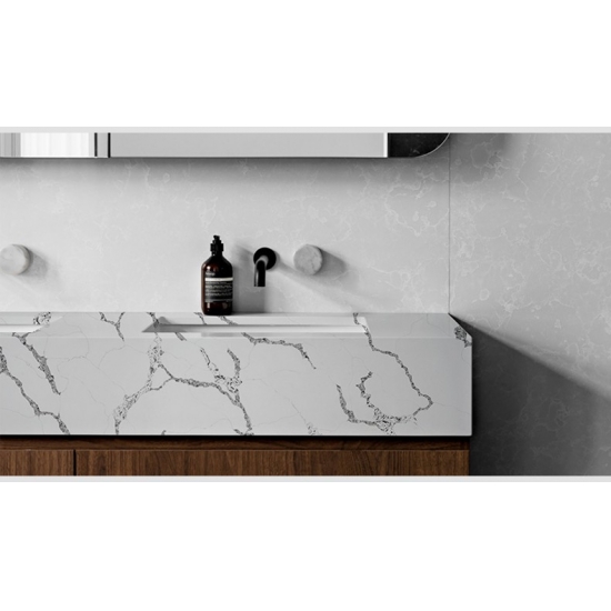 لوح كوارتز كالاكاتا فالي رقم 5077 يتميز بقاعدة بيضاء ناصعة، تتخللها عروق رمادية داكنة وجذابة. يخلق هذا التباين اللافت إحساسًا قويًا بالعمق والحركة الديناميكية. يجسد هذا اللوح الفخامة العصرية، وهو مثالي لخلق نقطة محورية مذهلة في أي تصميم داخلي معاصر.