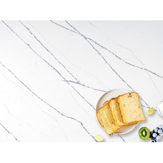 تتميز لوحة كوارتز بيلا 5079 بسطح أبيض دافئ وناعم تتخلله عروق رمادية رقيقة. يضفي هذا التدفق الطبيعي الرقيق عمقًا وحركة هادئة، مما يخلق جوًا من الأناقة المريحة. تمزج هذه اللوحة متعددة الاستخدامات بين السحر الخالد والبساطة العصرية، مما يجعلها مثالية لإضفاء لمسة من الهدوء والرقي على أي مساحة.