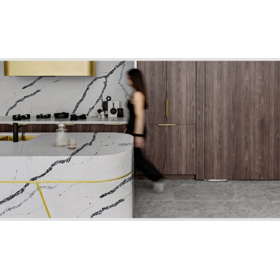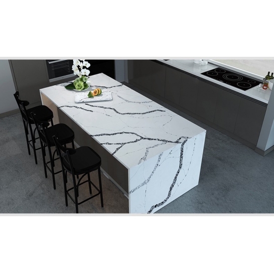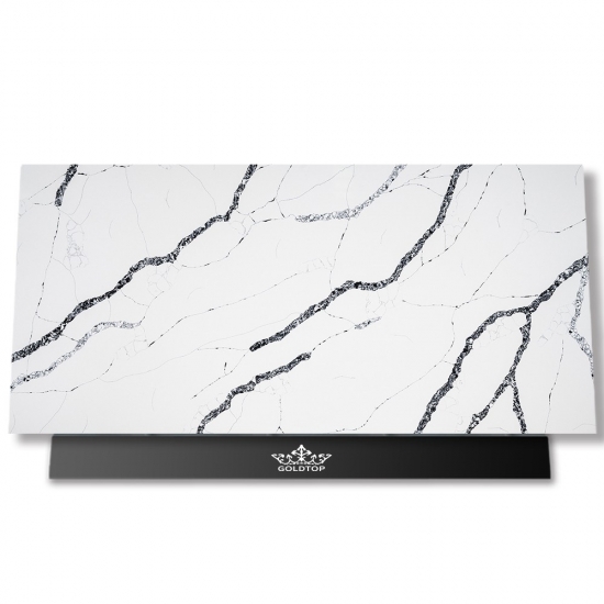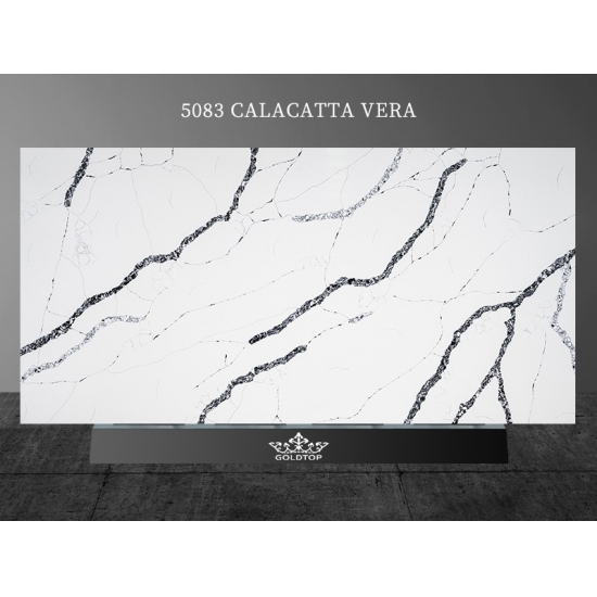 يتميز كوارتز كالاكاتا فيرا 5083 بقاعدة بيضاء ناصعة مع عروق رمادية بارزة وجريئة. يخلق هذا التباين المذهل إحساسًا قويًا بالعمق والحركة. تجسد هذه القطعة أناقة فاخرة، مما يجعلها مثالية لإضفاء لمسة راقية على أي تصميم داخلي عصري.