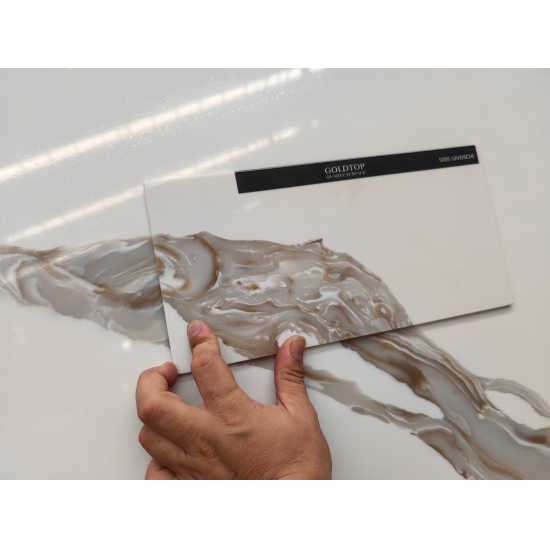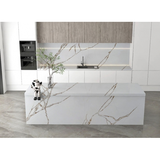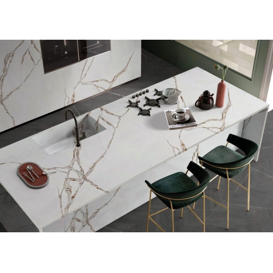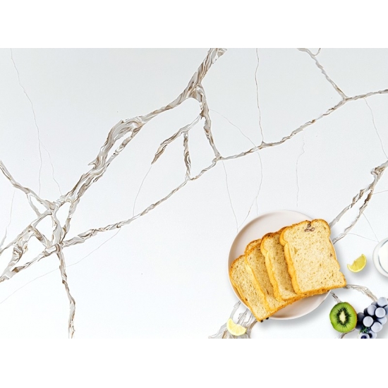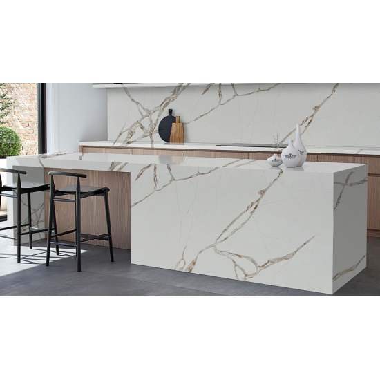 يُبهر كوارتز كالاكاتا، بجماله الفريد، الحواس بلونه الأبيض الناصع وعروقه الرخامية البارزة التي تُضفي عليه مظهرًا رخاميًا خلابًا. يتميز هذا الكوارتز بنمط عروقه العريضة والجميلة، وملمسه الفاخر، ليُقدم المظهر الطبيعي لرخام كالاكاتا، دون أي من عيوب أسطح الرخام. يُعد كوارتز كالاكاتا سطح عمل متينًا للغاية، مقاومًا للبقع والخدوش، مما يجعله خيارًا عمليًا جدًا لأسطح المطابخ والحمامات، والسلالم، وعتبات النوافذ، والأثاث المصمم حسب الطلب، والجدران والأرضيات الداخلية والخارجية، وتقنية القطع المائي، وغيرها من مشاريع التصميم.