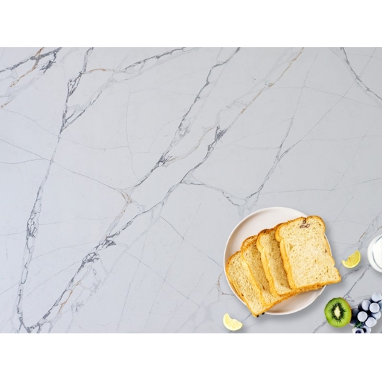 يُبهر كوارتز كالاكاتا، بجماله الفريد، الحواس بلونه الأبيض الناصع وعروقه الرخامية البارزة التي تُضفي عليه مظهرًا رخاميًا خلابًا. يتميز هذا الكوارتز بنمط عروقه العريضة والجميلة، وملمسه الفاخر، ليُقدم المظهر الطبيعي لرخام كالاكاتا، دون أي من عيوب أسطح الرخام. يُعد كوارتز كالاكاتا سطح عمل متينًا للغاية، مقاومًا للبقع والخدوش، مما يجعله خيارًا عمليًا جدًا لأسطح المطابخ والحمامات، والسلالم، وعتبات النوافذ، والأثاث المصمم حسب الطلب، والجدران والأرضيات الداخلية والخارجية، وتقنية القطع المائي، وغيرها من مشاريع التصميم.