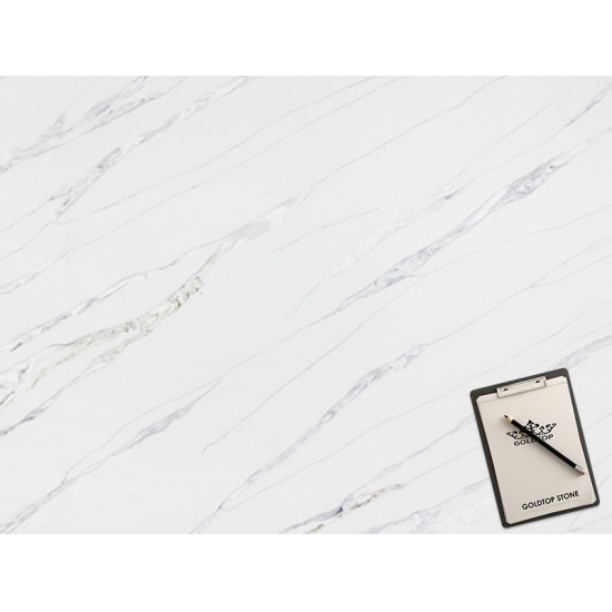 يُبهر كوارتز كالاكاتا، بجماله الفريد، الحواس بلونه الأبيض الناصع وعروقه الرخامية البارزة التي تُضفي عليه مظهرًا رخاميًا خلابًا. يتميز هذا الكوارتز بنمط عروقه العريضة والجميلة، وملمسه الفاخر، ليُقدم المظهر الطبيعي لرخام كالاكاتا، دون أي من عيوب أسطح الرخام. يُعد كوارتز كالاكاتا سطح عمل متينًا للغاية، مقاومًا للبقع والخدوش، مما يجعله خيارًا عمليًا جدًا لأسطح المطابخ والحمامات، والسلالم، وعتبات النوافذ، والأثاث المصمم حسب الطلب، والجدران والأرضيات الداخلية والخارجية، وتقنية القطع المائي، وغيرها من مشاريع التصميم.