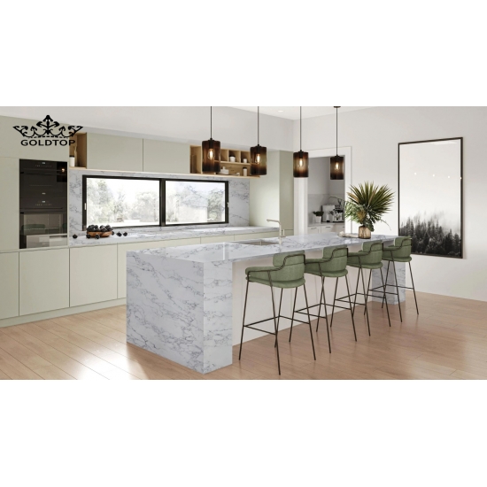 يُبهر كوارتز كالاكاتا، بجماله الفريد، الحواس بلونه الأبيض الناصع وعروقه الرخامية البارزة التي تُضفي عليه مظهرًا رخاميًا خلابًا. يتميز هذا الكوارتز بنمط عروقه العريضة والجميلة، وملمسه الفاخر، ليُقدم المظهر الطبيعي لرخام كالاكاتا، دون أي من عيوب أسطح الرخام. يُعد كوارتز كالاكاتا سطح عمل متينًا للغاية، مقاومًا للبقع والخدوش، مما يجعله خيارًا عمليًا جدًا لأسطح المطابخ والحمامات، والسلالم، وعتبات النوافذ، والأثاث المصمم حسب الطلب، والجدران والأرضيات الداخلية والخارجية، وتقنية القطع المائي، وغيرها من مشاريع التصميم.