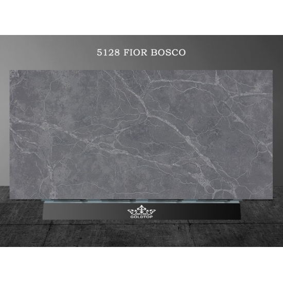 يُقدّم كوارتز فيور بوسكو 5128 لوحة رمادية أنيقة، تتخللها عروق عضوية دقيقة تُحاكي جمال الطبيعة الهادئة. تتميز كل قطعة بتكوين فريد من العمق اللوني والحركة الانسيابية، مما يضفي لمسة عصرية وهادئة على أي مساحة داخلية. يُعزز سطحه اللامع انعكاس الضوء، ليخلق تدفقًا بصريًا ديناميكيًا مثاليًا لأسطح المطابخ، وأحواض الحمامات، والجدران المميزة.