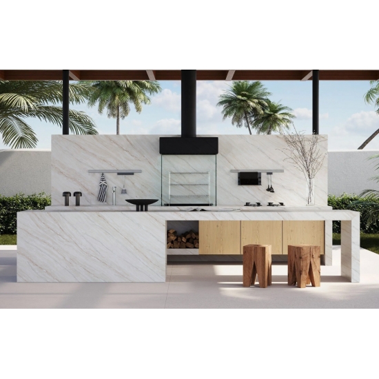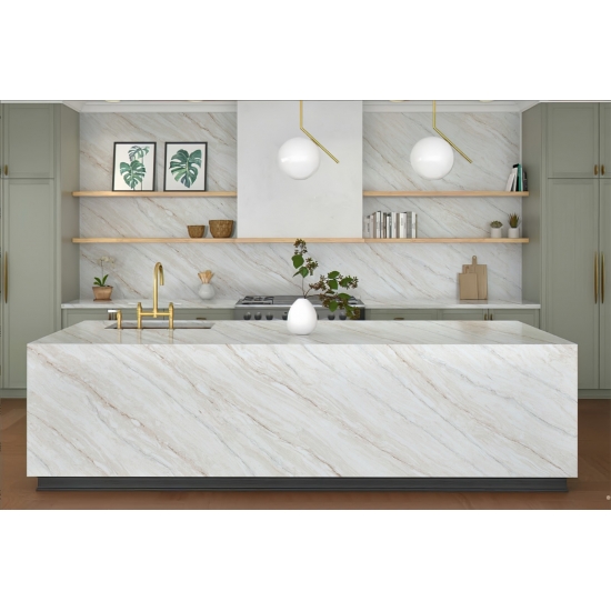 يُبهر كوارتز كالاكاتا، بجماله الفريد، الحواس بلونه الأبيض الناصع وعروقه الرخامية البارزة التي تُضفي عليه مظهرًا رخاميًا خلابًا. يتميز هذا الكوارتز بنمط عروقه العريضة والجميلة، وملمسه الفاخر، ليُقدم المظهر الطبيعي لرخام كالاكاتا، دون أي من عيوب أسطح الرخام. يُعد كوارتز كالاكاتا سطح عمل متينًا للغاية، مقاومًا للبقع والخدوش، مما يجعله خيارًا عمليًا جدًا لأسطح المطابخ والحمامات، والسلالم، وعتبات النوافذ، والأثاث المصمم حسب الطلب، والجدران والأرضيات الداخلية والخارجية، وتقنية القطع المائي، وغيرها من مشاريع التصميم.