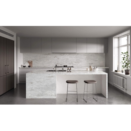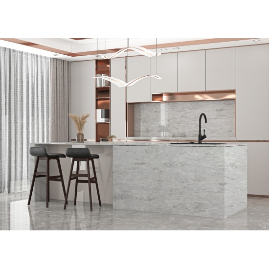 50 Square Metersحجر 6035 كونكريت بلانك يتميز بجاذبية عصرية، إذ يُظهر ملمسًا يشبه الخرسانة، لكن بسطح أكثر نعومة ودقة. لونه أبيض ناصع مع لمسات رمادية خفيفة، مما يمنحه مظهرًا أنيقًا وراقيًا. يُعد هذا الحجر مثاليًا للديكورات المنزلية المعاصرة، وخاصة في المطابخ والحمامات، حيث يضفي لمسة أنيقة وعصرية على أي مساحة.