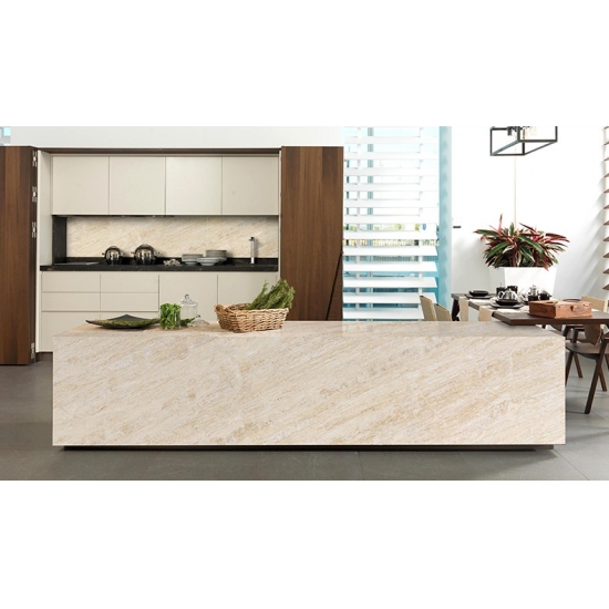 كوارتز داينو ريالي البيج هو كوارتز مُصنّع يُجسّد روعة حجر داينو ريالي الإيطالي الأسطوري. يُعيد هذا الكوارتز ببراعة ابتكار جمال رخام داينو ريالي الطبيعي، بخلفية بيج دافئة مُزينة بنقوش أنيقة مُخططة تتداخل فيها درجات لون القهوة والكراميل والعاجي. يُضفي تضمين تفاصيل تُشبه الأحافير وطبقات معدنية فريدة ثراءً بصريًا وشخصية مميزة لكل لوح، ممزوجًا بسلاسة بين قرون من الأناقة السردينية والتصميم العصري ليُضفي على أي مساحة دفئًا متوازنًا وجاذبية فنية.