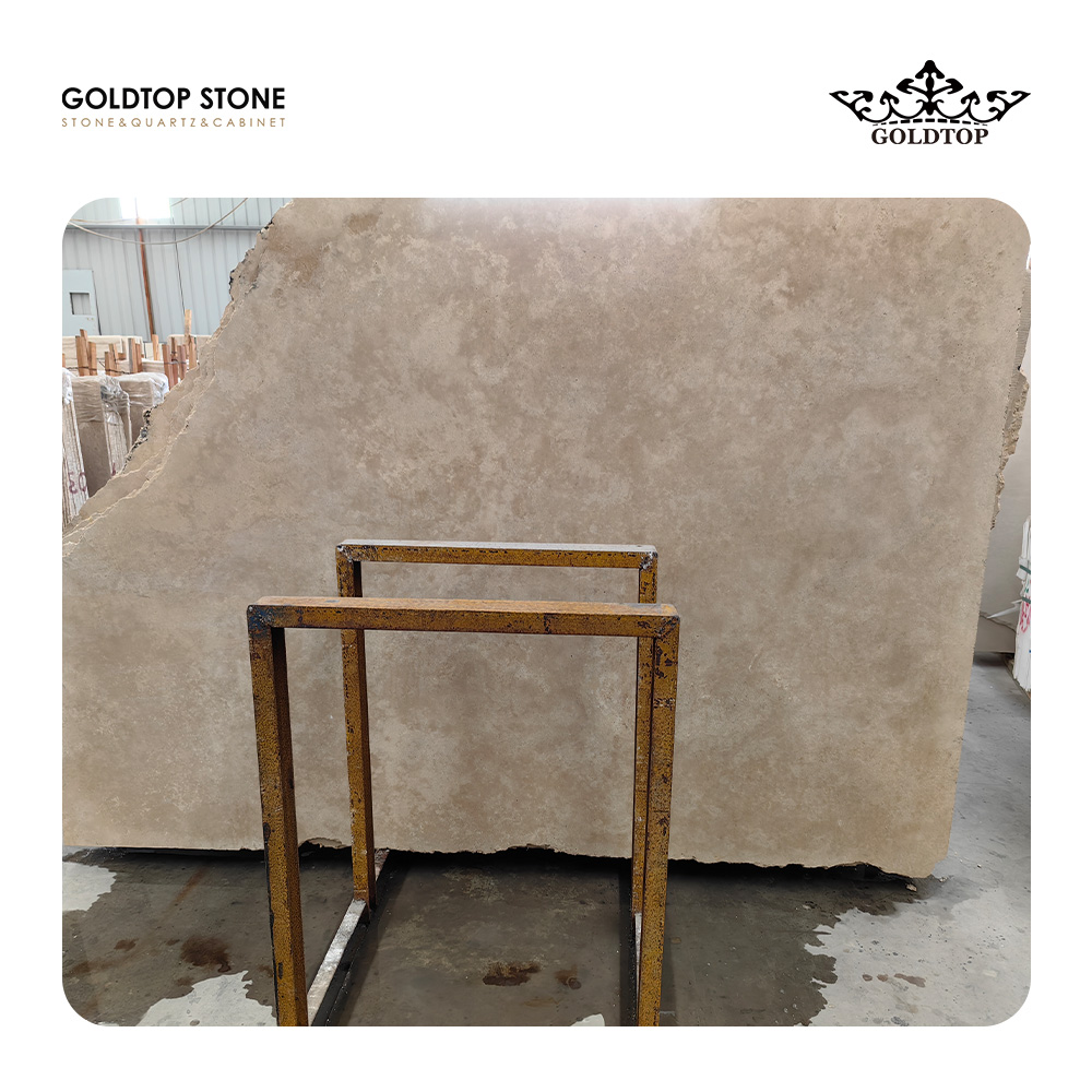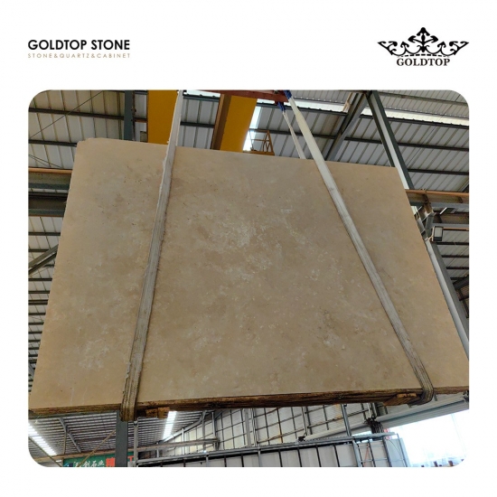 Polished/ Honed/ Groove/ Leather Finishألواح رخام ترافرتين بيج مقطوعة بشكل متقاطع