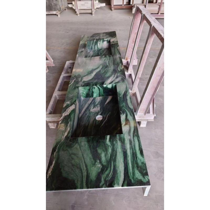 أسطح العمل الحجرية الفاخرة من الحرير الأخضر هي مزيج مثالي بين الأناقة والمتانة، حيث تتميز بلون أخضر طبيعي أخاذ مع عروق حريرية رقيقة تُضفي عمقًا ورقيًا على أي مساحة. صُنعت هذه الأسطح من حجر عالي الجودة، ولا تقتصر مزاياها على جمالها الفاخر فحسب، بل تتميز أيضًا بمتانة استثنائية وعمر افتراضي طويل، مما يجعلها مثالية للمطابخ والحمامات والتصاميم الداخلية الفاخرة. تُضفي تنوعات ألوانها الفريدة ولمساتها النهائية الناعمة المصقولة لمسة خالدة تُعزز جمال الديكور الحديث والكلاسيكي على حد سواء، مما يجعل كل سطح منها تعبيرًا عن ذوق رفيع.