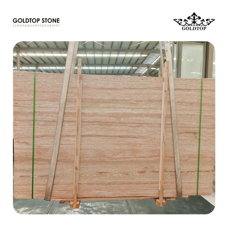 Polished/ Honed/ Groove/ Leather Finishألواح وبلاط من حجر الترافرتين الوردي الإيراني