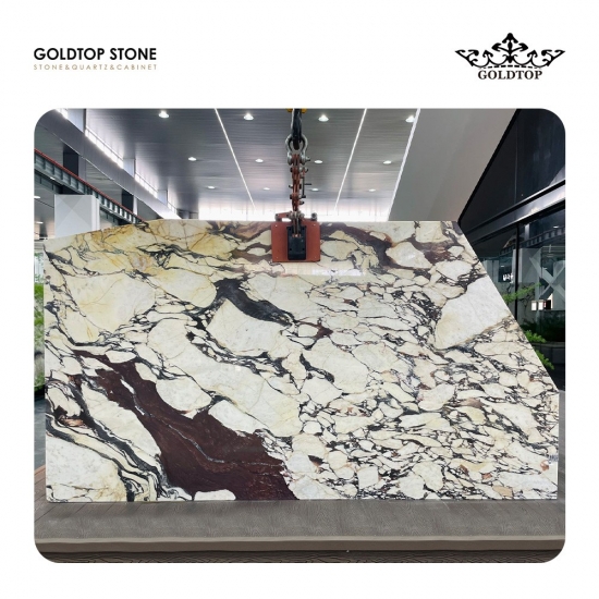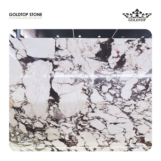 رخام أرابيسكاتو فيولا يُضفي هذا التصميم لمسةً جريئةً بقماشه الأبيض الناصع، المُعروق بشكلٍ دراميٍّ باللون الأحمر الداكن والبني الدافئ. يُضفي هذا التباين اللافت انسيابيةً بصريةً ديناميكيةً، مُضفيًا على أي مساحة لمسةً من الرقيّ والجاذبية لا مثيل لها.