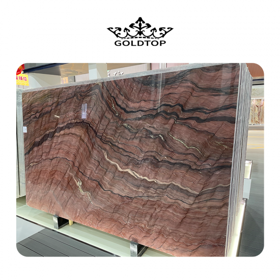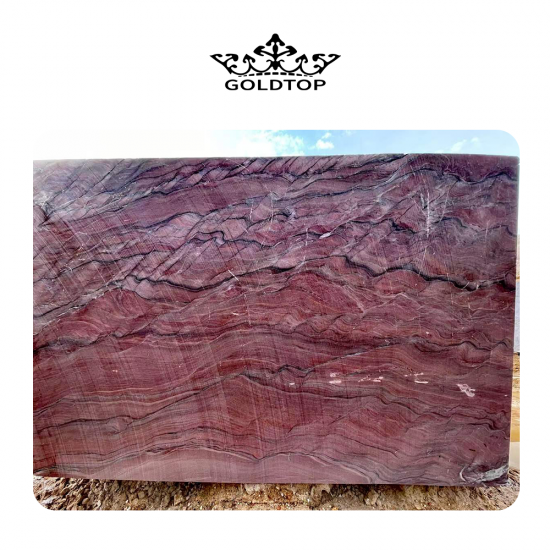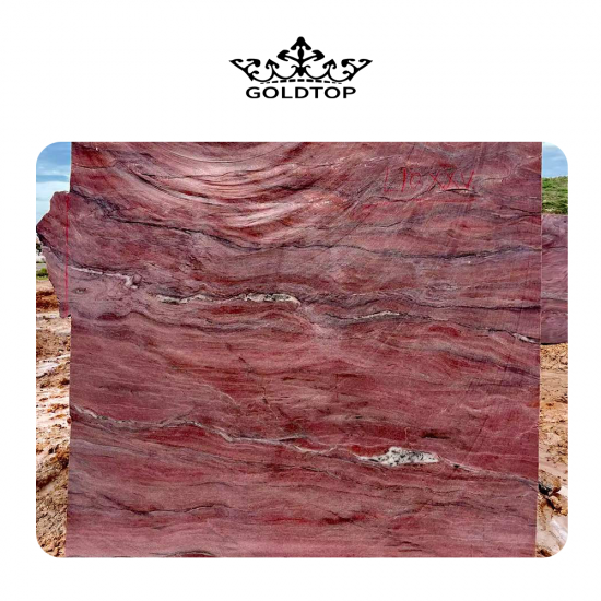 7-30 daysحجر الكوارتزيت الحريري الأحمر الكبير ذو عروق درامية فريدة من نوعها