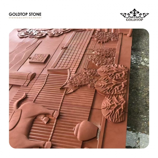 سيتشوان الحجر الرملي الأحمر هو لوح من الحجر الرملي الرسوبي الطبيعي، يُستخرج من مناطق تعدين عالية الجودة في سيتشوان، الصين. تتكون مكوناته الأساسية من الكوارتز (أكثر من 65%)، والطين، والجوثيت (المكون الرئيسي الملون). نظرًا للونه الأحمر الزاهي وخصائصه الثابتة، يُستخدم بكثرة في الزخرفة المعمارية والنحت الفني. أما لونه وملمسه فهما كالتالي: اللون الأساسي: درجات دافئة من الأحمر، مثل الأحمر الفاتح والوردي والأحمر الصدئ؛ الملمس: دقيق الحبيبات، بنقوش طبيعية تشبه المناظر الطبيعية، أو حبيبات الخشب، أو طبقات متعددة، بعضها يحتوي على بقع معدنية فاتحة اللون؛ كل قطعة لها ملمس فريد.